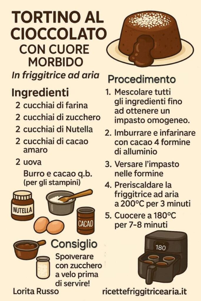 - Tortino al cioccolato cuore morbido in friggitrice ad aria