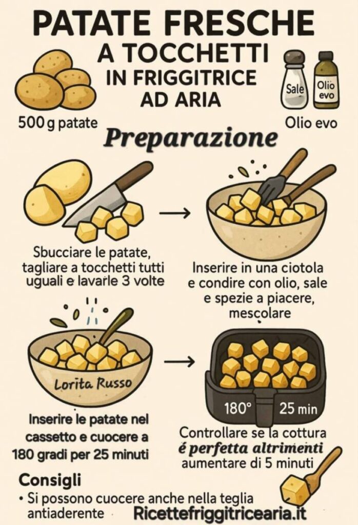 Ti piace la cucina veloce, sana e gustosa? Ebbene non puoi perderti le infografiche realizzate da Lorita Russo, vera e propria regina delle ricette per friggitrice ad aria. Con il suo stile chiaro, colorato e pratico, Lorita ha raccolto ben 12 ricette imperdibili, trasformandole in infografiche visive semplici da seguire e perfette anche per i meno esperti.