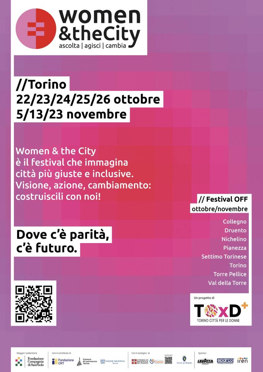 “Women and the City” giunge alla sua terza edizione con un titolo che bene ne sintetizza il programma e la sfida “Dove c’è parità, c’è futuro”. Un palinsesto davvero ricco di ospiti di primo piano e di appuntamenti estremamente interessanti. In un tempo purtroppo ancora segnato da discriminazioni e diseguaglianze l’augurio è che questa importante rassegna possa crescere nella partecipazione e nella sua capacità di fare della cultura del dialogo e del rispetto la cifra della nostra città. La parità di genere è un imperativo sociale, economico e morale che richiede azioni concrete da parte di tutti. Solo attraverso un impegno collettivo e continuo possiamo costruire un mondo più equo, inclusivo e sostenibile per le generazioni presenti e future.” Elena Apollonio, Presidente Commissione Diritti e Pari Opportunità del Comune di Torino